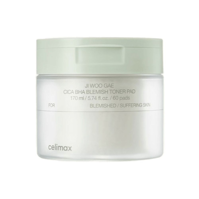 Celimax Ji Woo Gae Cica BHA Blemish Toner Pad пэды осветляют сальные нити, смягчают огрубевшие участки кожи и сужают поры без сухости и раздражения, идеально подходят для чувствительной и проблемной кожи.